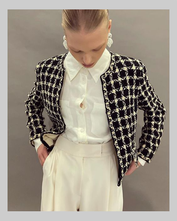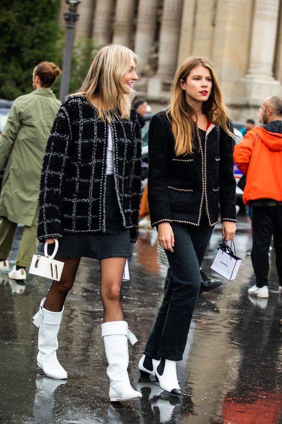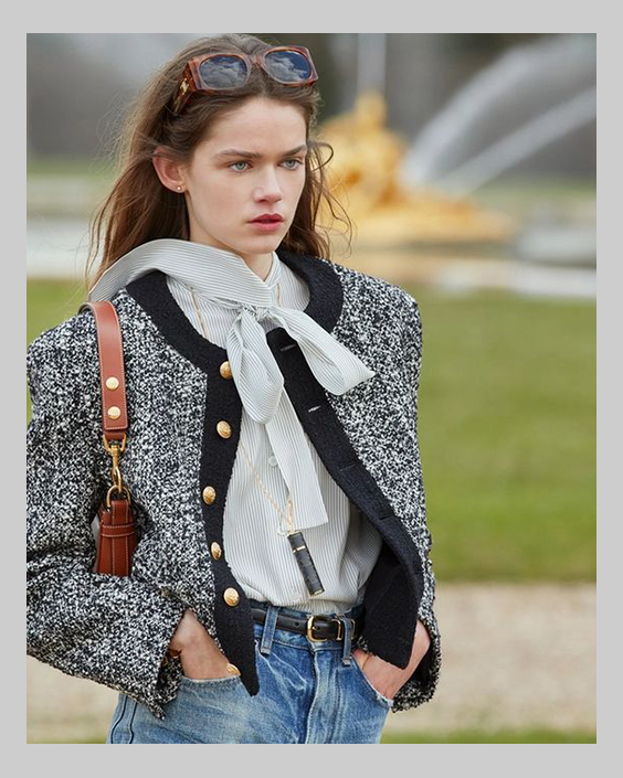 Η χαρακτηριστική boucle υφή του και η συνήθως cropped σιλουέτα του εναρμονίζεται με την αύρα δύο διαφορετικών εποχών: των φουτουριστικών 60s και των πληθωρικών 80s – σε αποχρώσεις του ηλεκτρικού μπλε, του ζωηρού κόκκινου, του αυστηρού γκρι. Με το μαύρο φυσικά να παραμένει η σταθερή επιλογή και η αφετηρία της συγκεκριμένης στιλιστικής φόρμουλας.