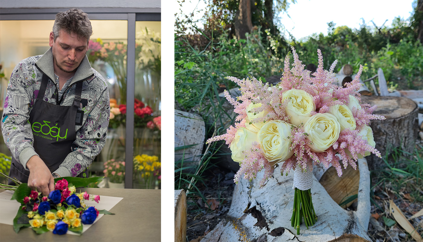 Το πιο απλό που μου έχουν ζητήσει είναι ένα λουλούδι με μια κορδέλα, έτσι απλά να το προσφέρουν με αγάπη. Το πιο σύνθετο και περίεργο που μου έχουν ζητήσει σε εκδήλωση είναι να κρέμονται άνθη από περίεργα μέρη ή να κάνω μια ιδιαίτερη σύνθεση σε γάμο. Η δημιουργικότητα που συνδέεται με τα λουλούδια είναι μέρος αυτού που με κρατά ενθουσιασμένο για τη δουλειά μου!